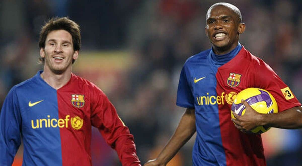 Eto’o, de 39 años y retirado hace una temporada, disputó 199 encuentros y anotó 130 goles en el Barcelona.