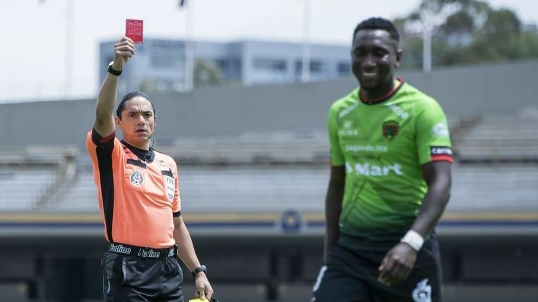Mal día para el ecuatoriano Erick Castillo, pues fue sancionado con tarjeta roja a los 8 minutos del partido.