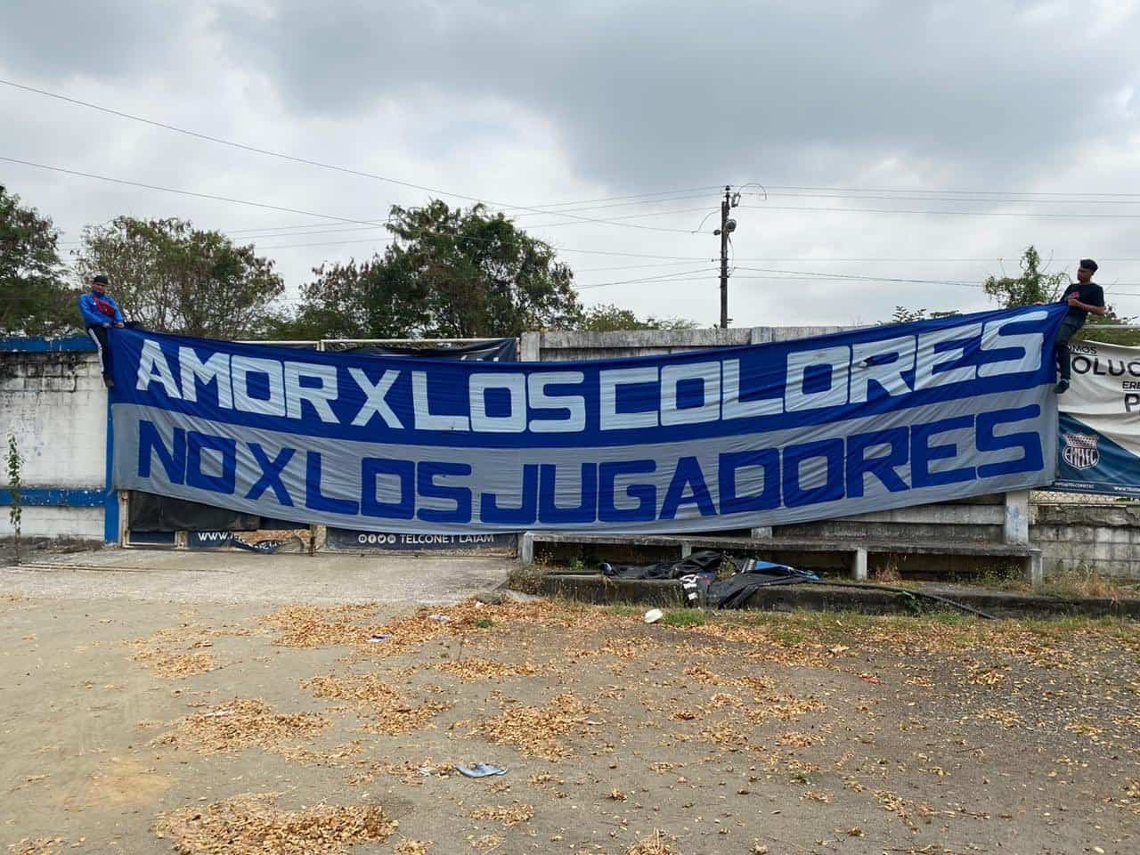 Hinchas de Emelec fueron la mañana de este jueves al entrenamiento de los ‘azules’ para poner banderas y con cánticos en contra del equipo, debido a los malos resultados en la presente edición de la Liga PRO Banco Pichincha.