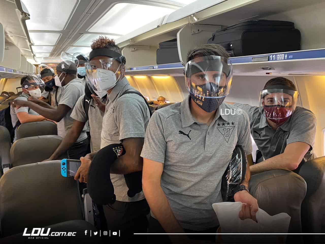 En este caso fue vía vuelo chárter cumpliendo con todas las medidas de bioseguridad que exige la CONMEBOL como el uso de mascarillas y máscaras de protección para cada uno de los miembros de la delegación.