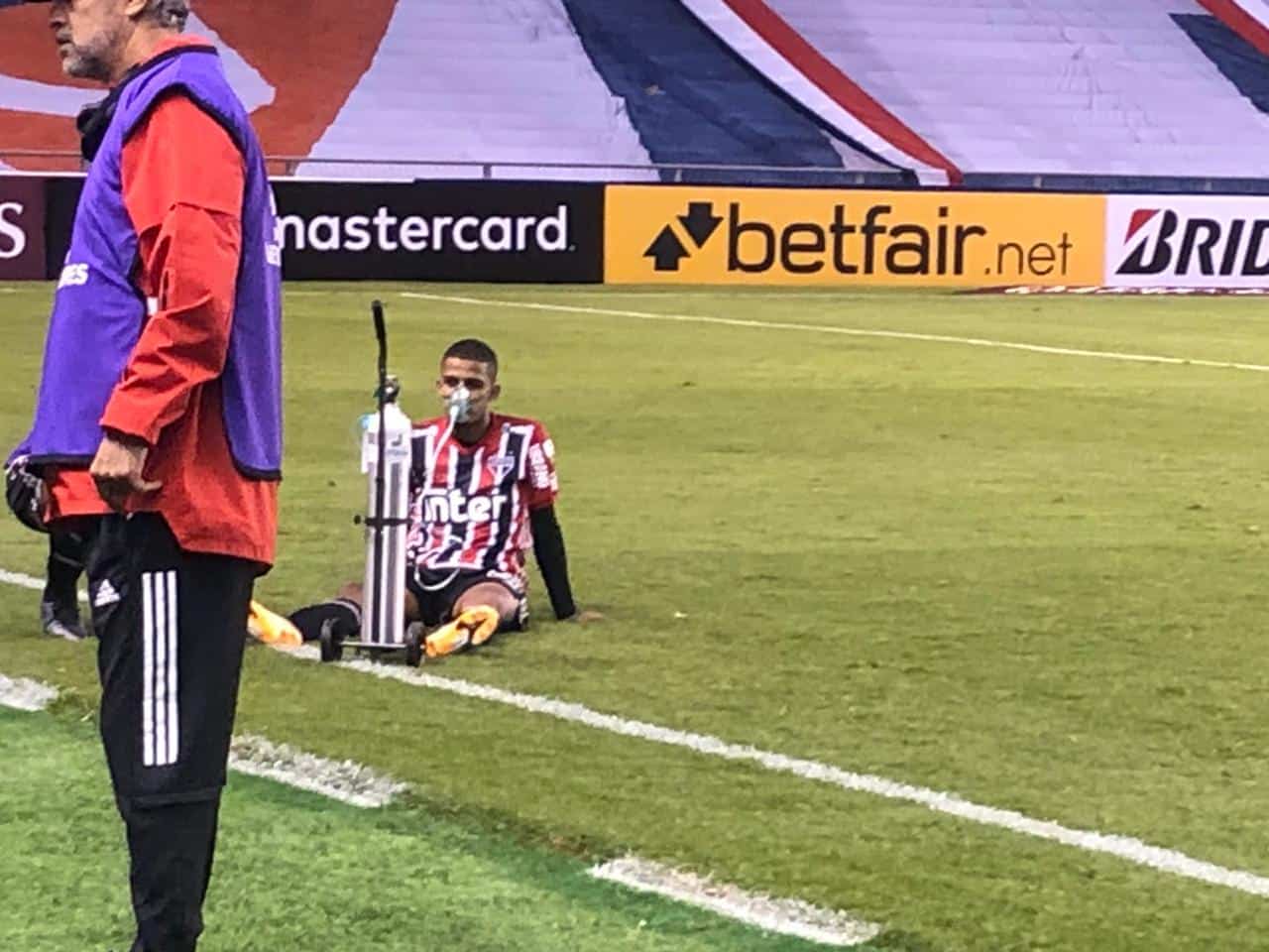#Brenner, de 20 años, debía hablar para la TV. Fue el mejor de #SaoPaulo en el juego Vs. #LDU por #Libertadores. Sin embargo, no pudo hablar. ¡Necesitaba oxígeno! 📸: .@KaritoChamorroH pic.twitter.com/6enGn4HxUF