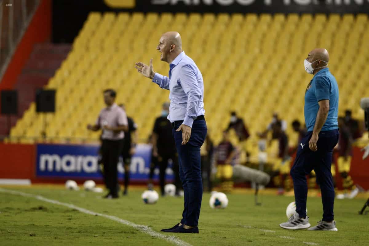 Pablo Repetto hablo en rueda de prensa, tras el empate 2-2 entre Barcelona y Liga de Quito: “No fue fácil, más que todo por la forma que nos convirtieron, nos cogieron mal parados. Destaco la rebeldía del equipo. El resultado no es malo pero hubiéramos ganado”.