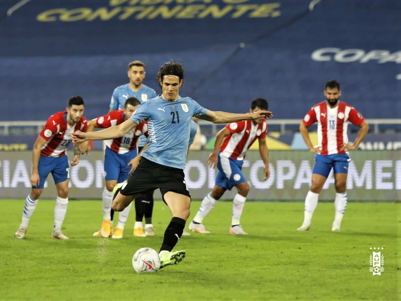 ¡Gol de Uruguay 🇺🇾! Edinson Cavani, a los 20′ PT, anota de penal el 1-0 contra Paraguay 🇵🇾 en Río de Janeiro.