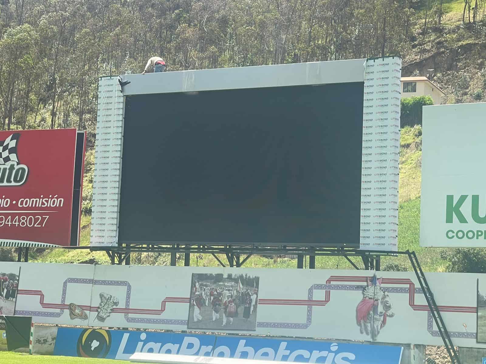 El marcador eléctrico ya está lista en el estadio de @ClubMushucRuna1 una pantalla led de 50m cuadrados de alta resolución @RadioIndoamric1 pic.twitter.com/s7x5YQ5Sb4