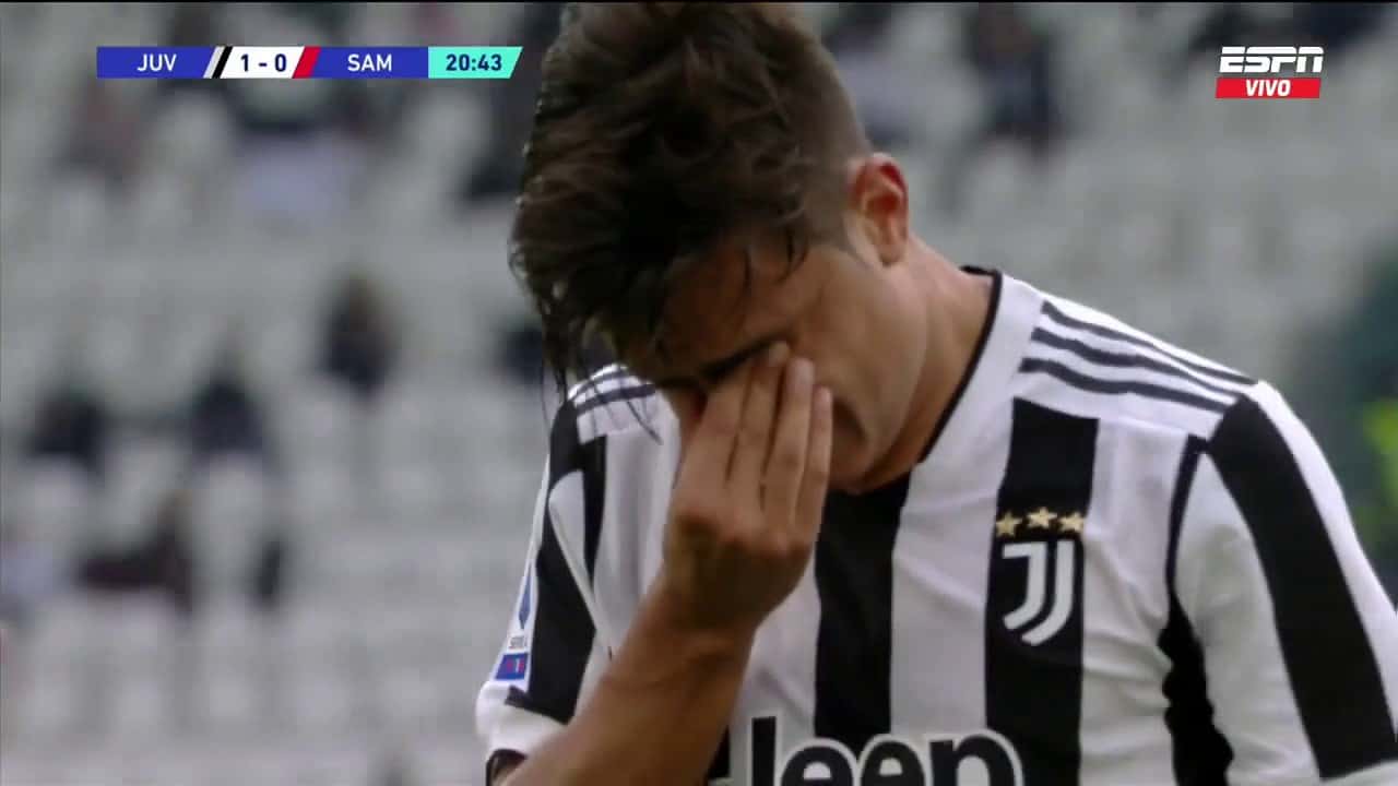 Malas noticias para Juventus. El atacante argentino Paulo Dybala se retiró entre lágrimas este domingo en el compromiso ante el Sampdoria, por la fecha 6 de la Serie A de la liga italiana. La ‘Joya’ dejó el campo por una lesión muscular.