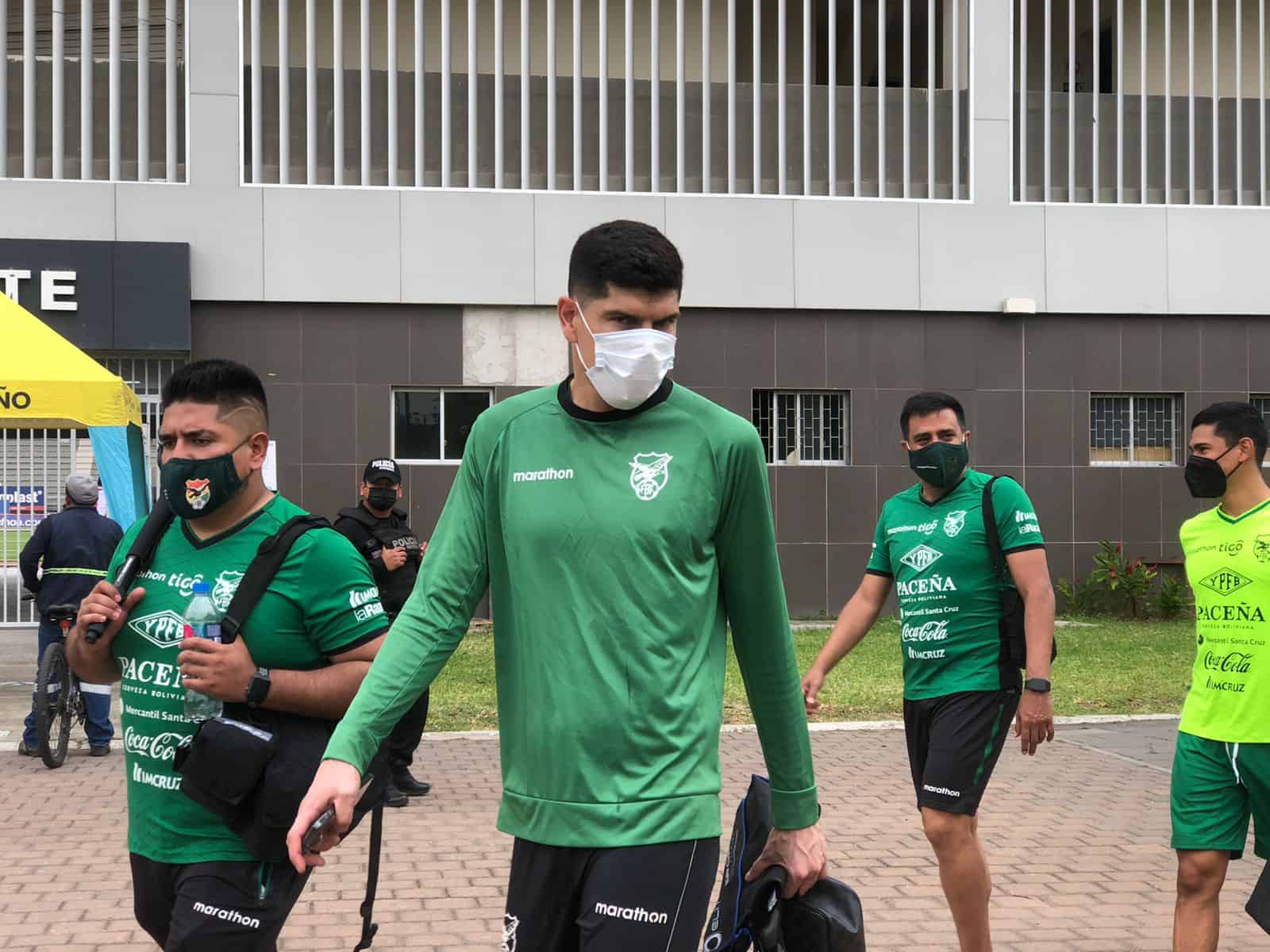 Fueron al estadio Christian Benítez. Los bolivianos irán esta tarde al Monumental a hacer el reconocimiento de cancha.