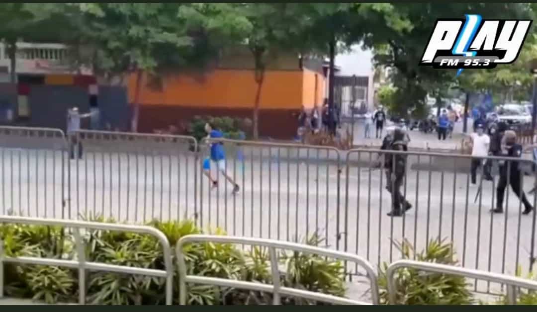 Los colegas de PLAY FM pudieron captar imágenes de los problemas en el escenario deportivo. La Policía Nacional tuvo que intervenir