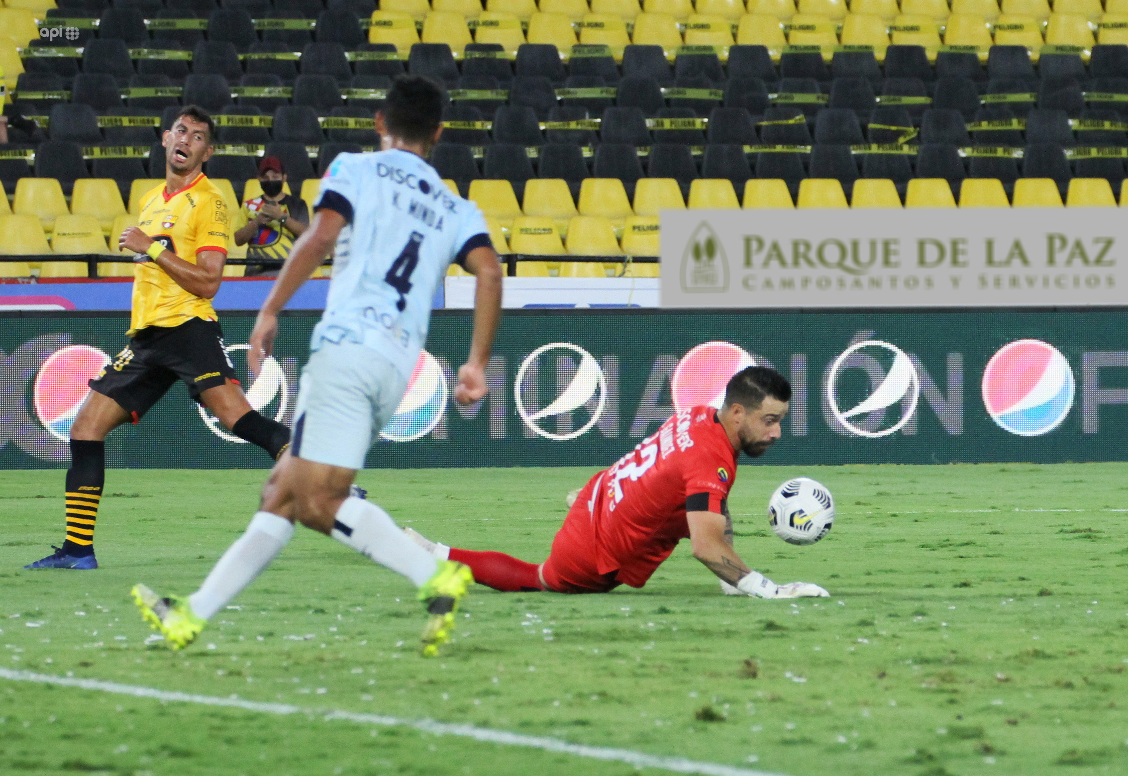 Hernán Galíndez tapó ayer en el estadio Monumental, protegiendo el arco de Universidad Católica. El portero de La TRI aprovechó para agradecer a la afición de Barcelona por su trato con él.