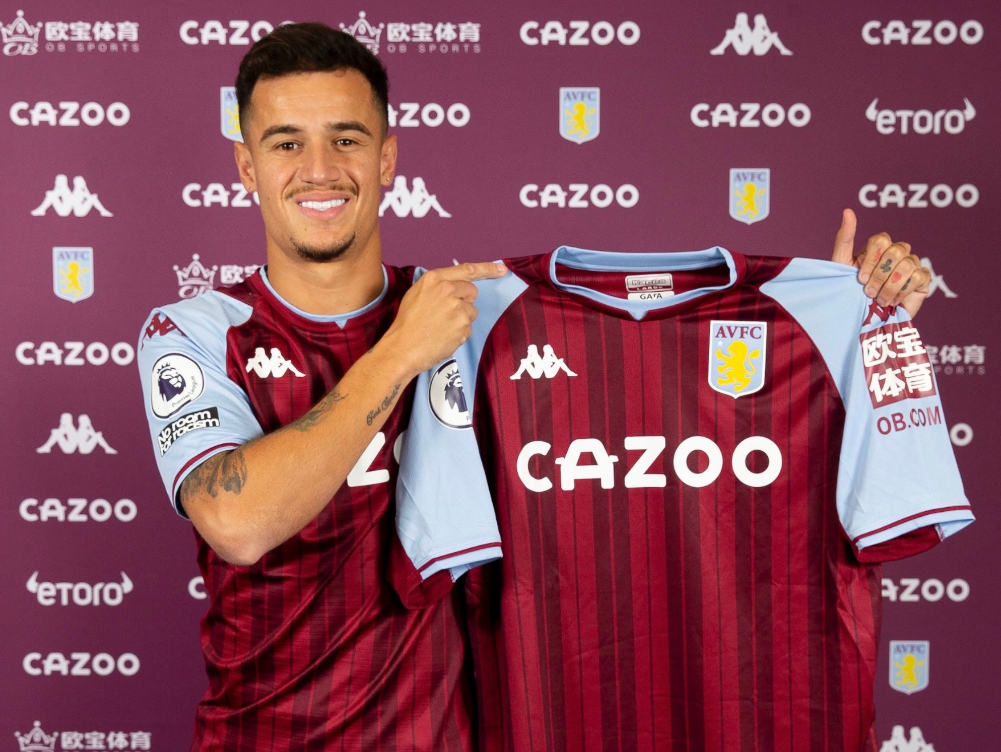 Aston Villa presentó de manera oficial a su nuevo refuerzo: Coutinho. El brasileño, quien usará la casaca número 23, posó por primera vez con los colores del club; será compañero de los argentinos Emiliano “DIbu” Martínez y Emiliano Buendía.
