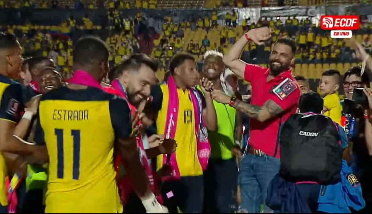 Gonzalo Plata y Piero Hincapié fueron de los más animados en la celebración luego del partido ante Argentina.