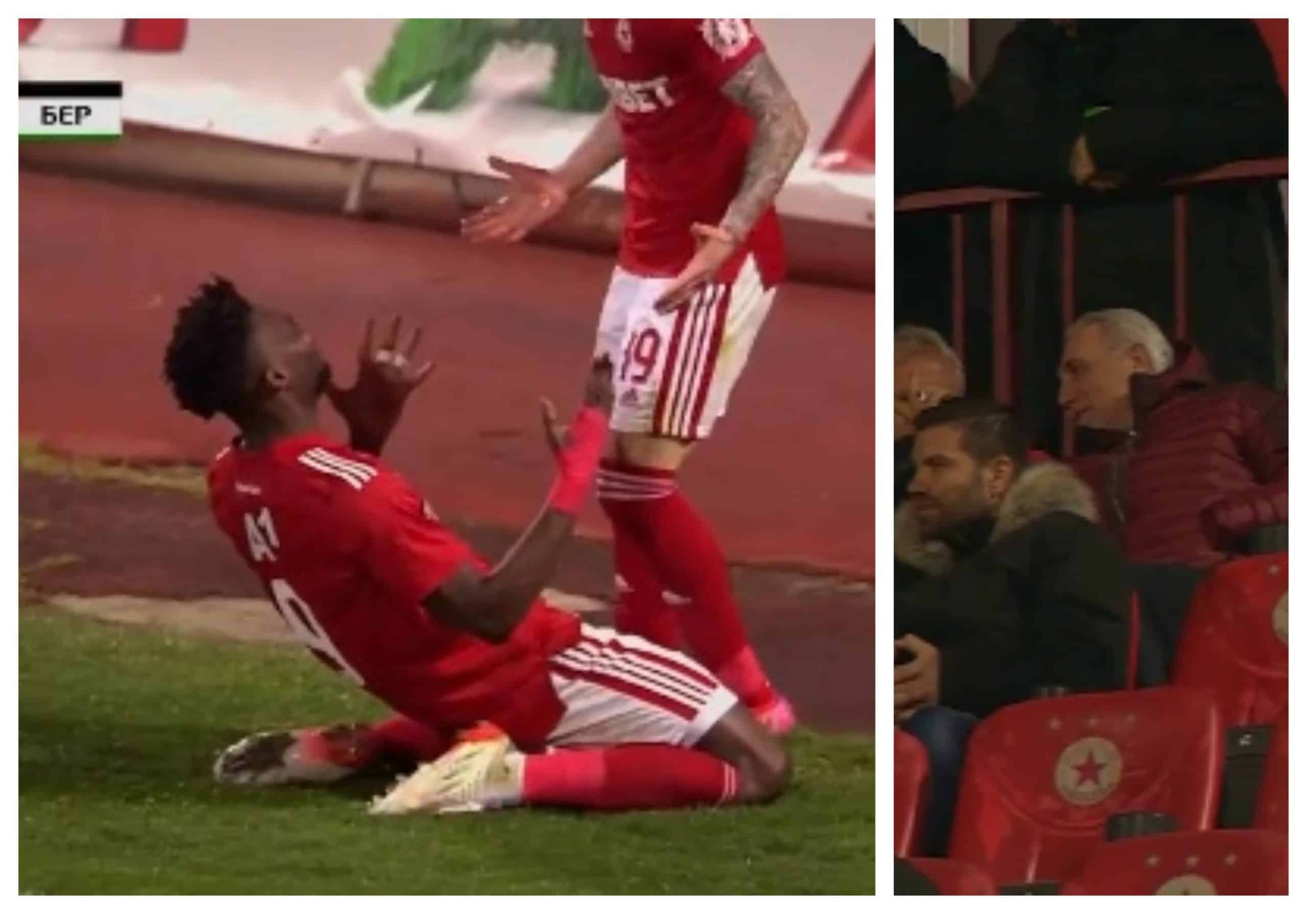 CSKA-Sofia’s Ecuadorian striker Jordy Caicedo finds the back of the net against Beroe as club legend Hristo Stoichkov watches from the stands