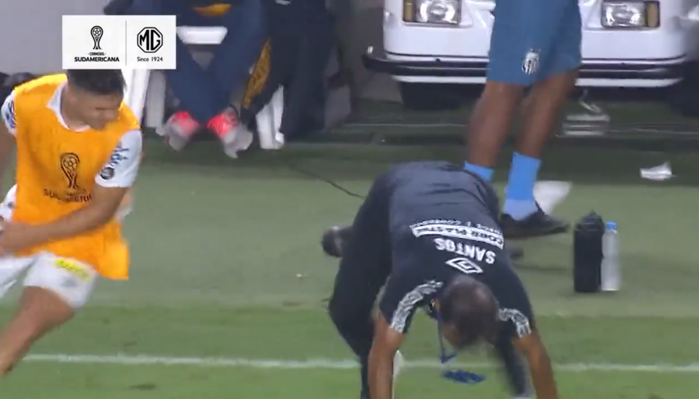 Las redes oficiales del Santos FC compartieron las imágenes de este momento. El gol del ‘Cuco’ Angulo a los 84′ provocó una eufórica celebración en el ex DT de Barcelona SC que fue captada por las cámaras de la transmisión.