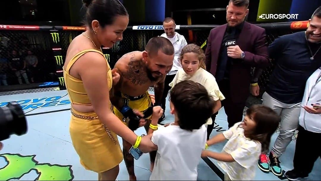 Luego del veredicto y por supuesto la victoria del ecuatoriano, su familia entró al octágono y compartieron un momento muy especial.