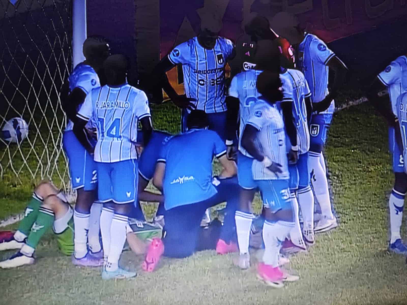 Cuando se iba a jugar el segundo tiempo entre 9 De Octubre de Ecuador y DIM de COLOMBIA, sucedio algo terrible.