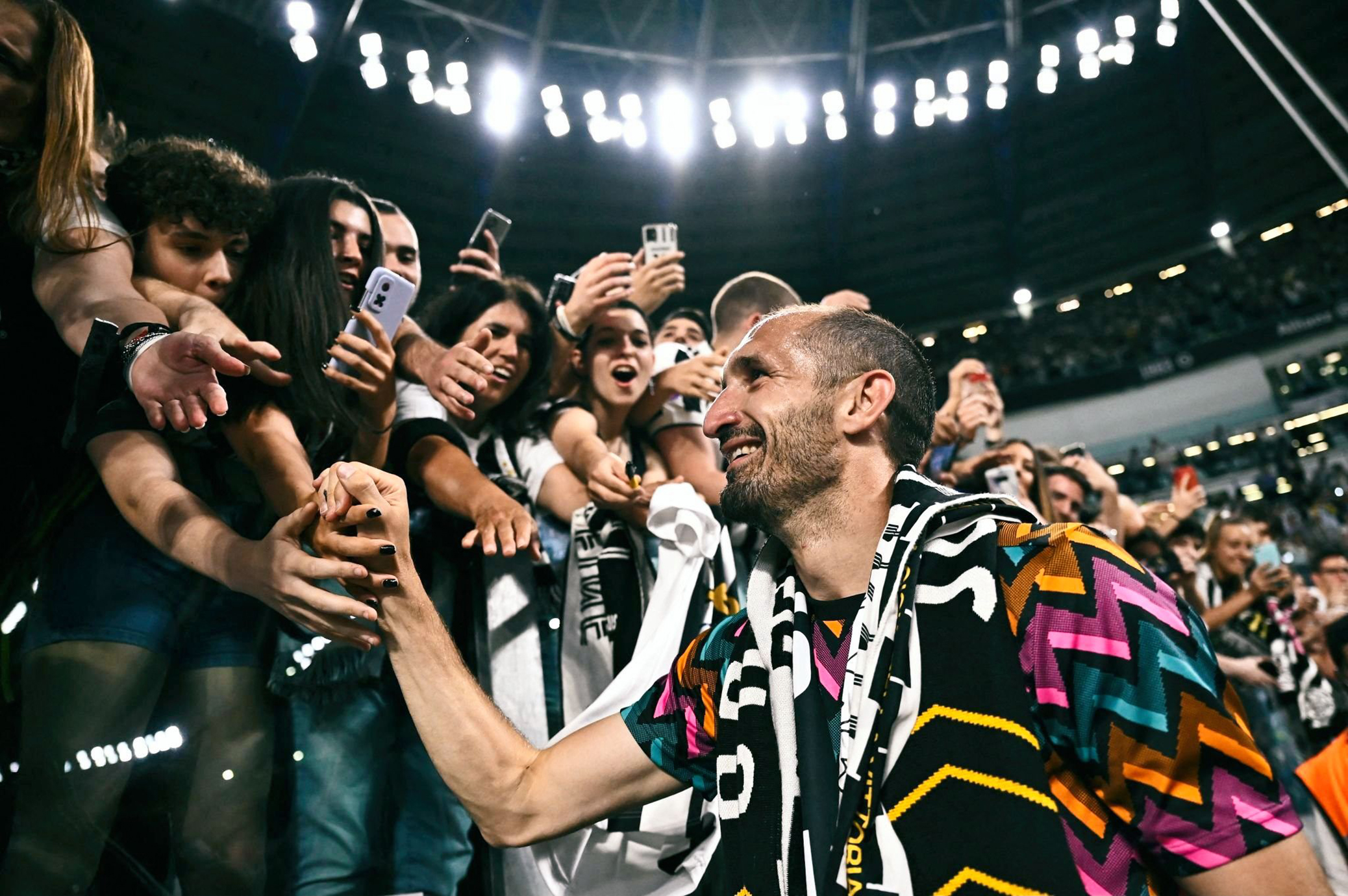 ¡CONTINÚAN LAS MUESTRAS DE AFECTO! Chiellini se despide de su gente en el Juventus Stadium y todos quieren tener un recuerdo con él. pic.twitter.com/iDAEohn90n
