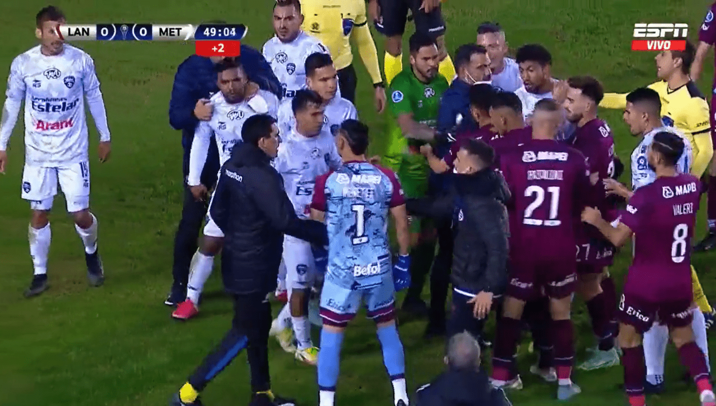 Un cierre de primer tiempo CALIENTE en el Sur: picante enfrentamiento entre los jugadores de Lanús y Metropolitanos en la #Sudamericana.