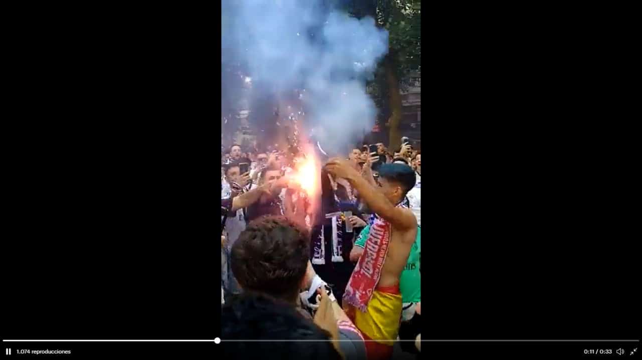 Aficionados del #RealMadrid quemaron la camiseta de #Mbappé en los exteriores del Estadio Santiago Bernabeu previo a la final de la #ChampionsLeague 🏆#UCLfinal #UCL pic.twitter.com/ArNr5k40ib