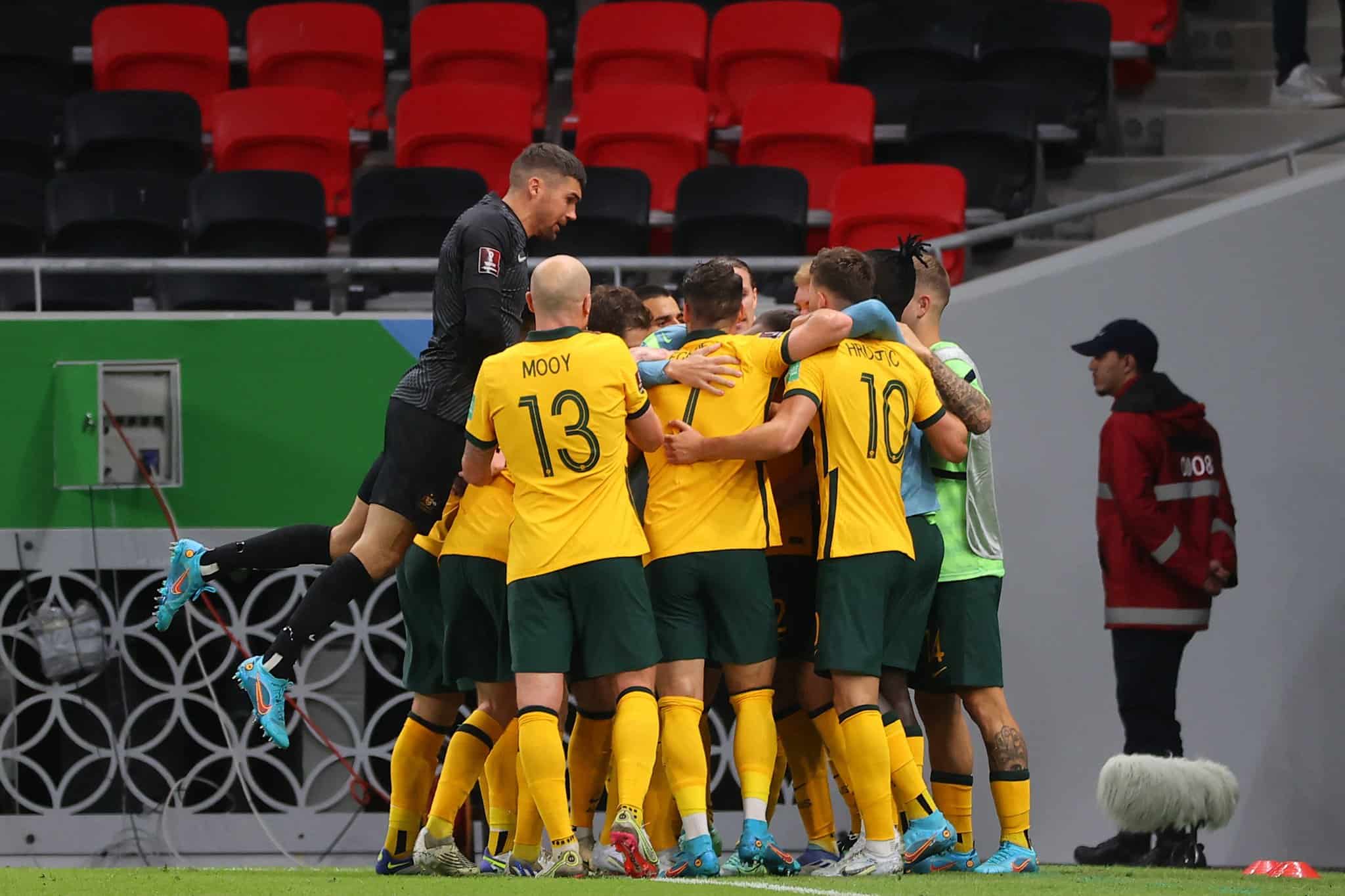 La selección australiana venció 2-1 a Emiratos Árabes y avanzó al último partido por un cupo a Qatar.
