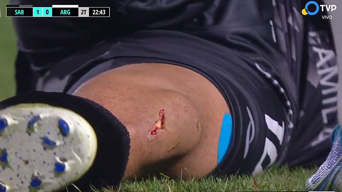 El número diez del conjunto comandado por Israel Damonte terminó revolcándose del dolor en el verde césped y en las repeticiones se llega a notar que su propio compañero fue quien le propina el corte en su pierna izquierda en el choque.