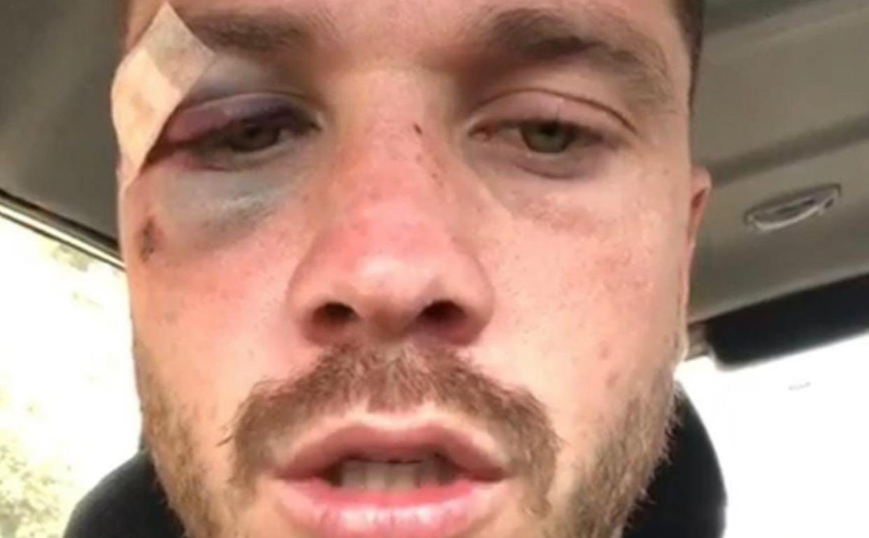 Así se encuentra Tomas Molina después del choque que tuvo con su compañero.