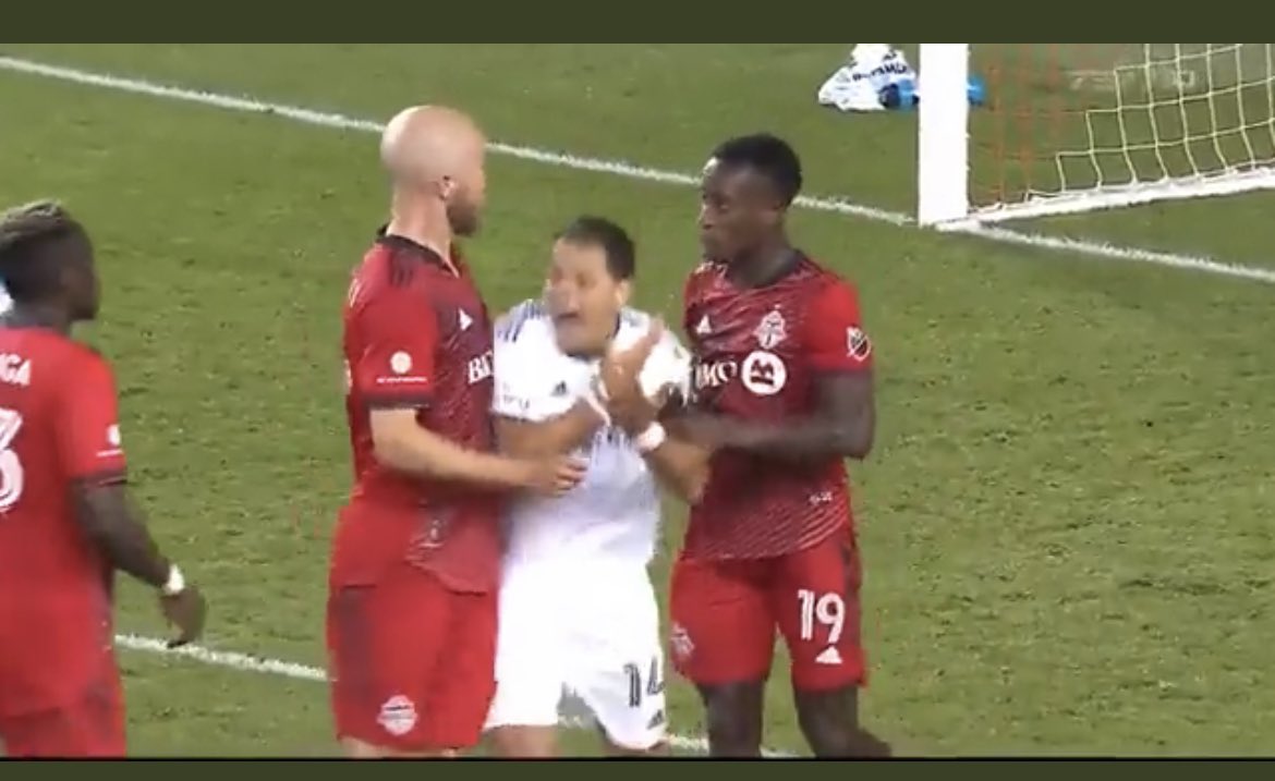 Chicharito Hernández provocó el enojo de Michael Bradley, quien lo fue a encarar, pero no fue el único, pues aparecieron otros dos jugadores del Toronto FC.