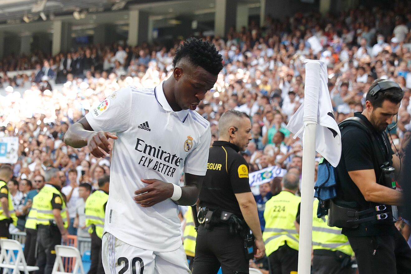 El mundo del fútbol se está volcando con Vinicius después de que el jugador del Real Madrid fuera víctima de un comentario racista en el programa El Chiringuito a raíz de sus celebraciones goleadoras con ‘bailes’ incluidos. El club merengue ha salido este viernes en defensa del brasileño con el siguiente comunicado en sus redes sociales: