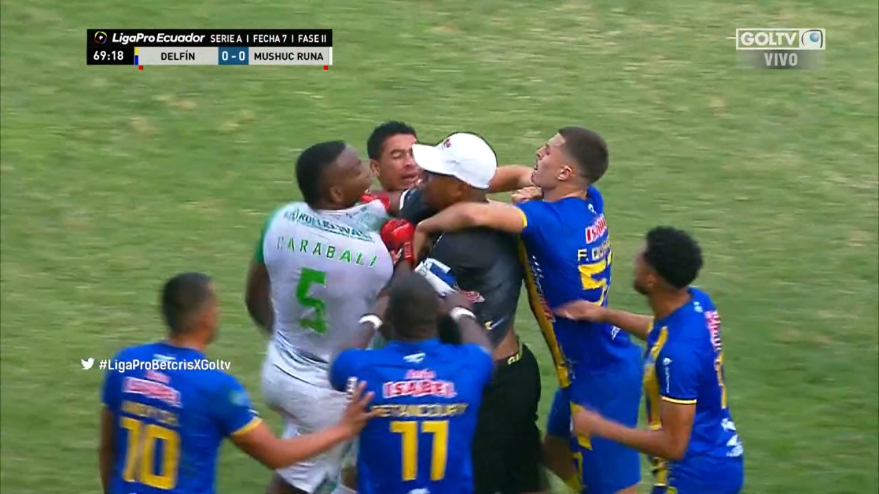 Franklin Carabalí, jugador de Mushuc Runa, habló para los colegas de radio Huancavilca donde señaló que pasó con el portero de Delfín.