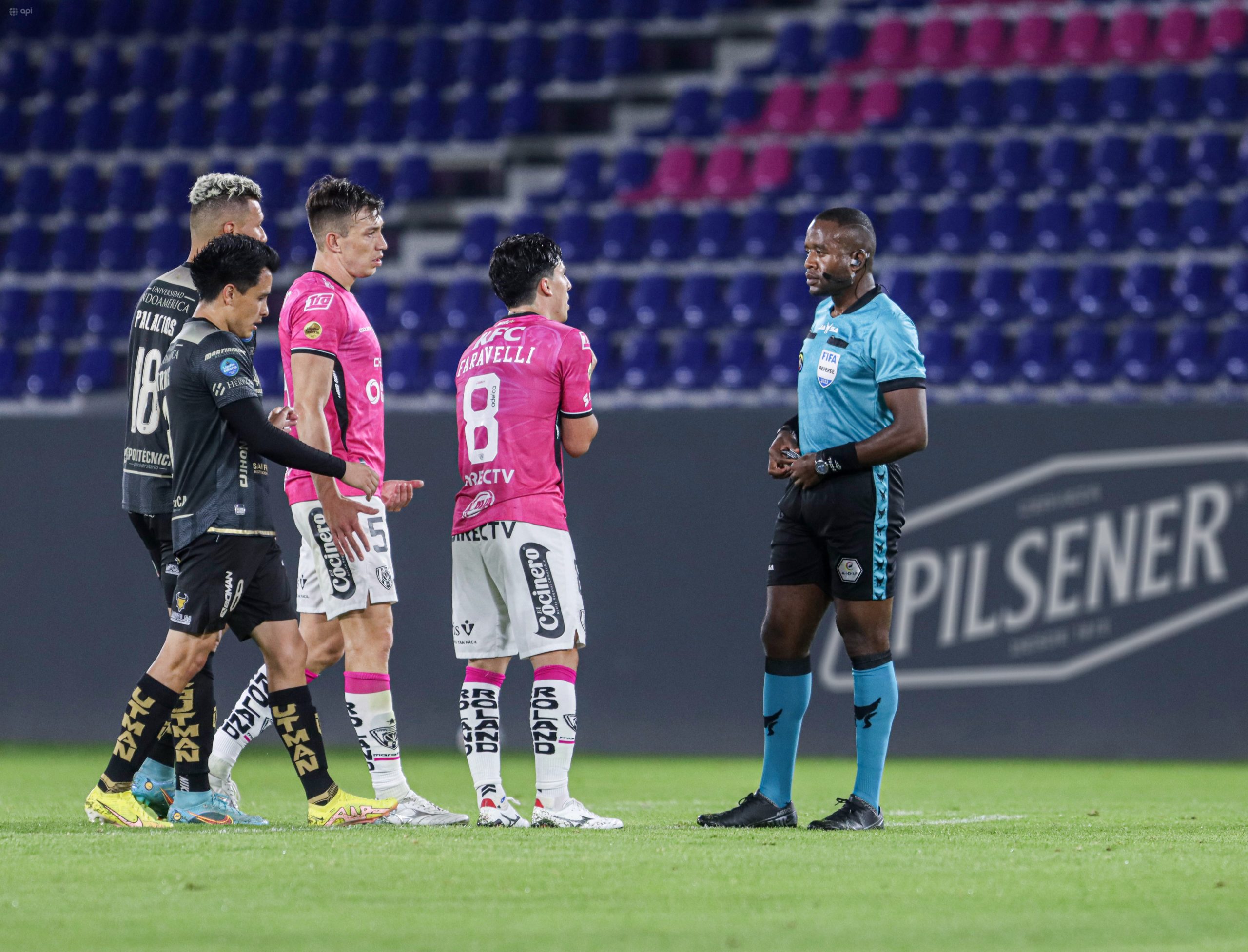 Problemas en el túnel del estadio Banco Guayaquil entre jugadores de ambos equipos y agresiones a los árbitros, nos informa @Braian_AvalosG
