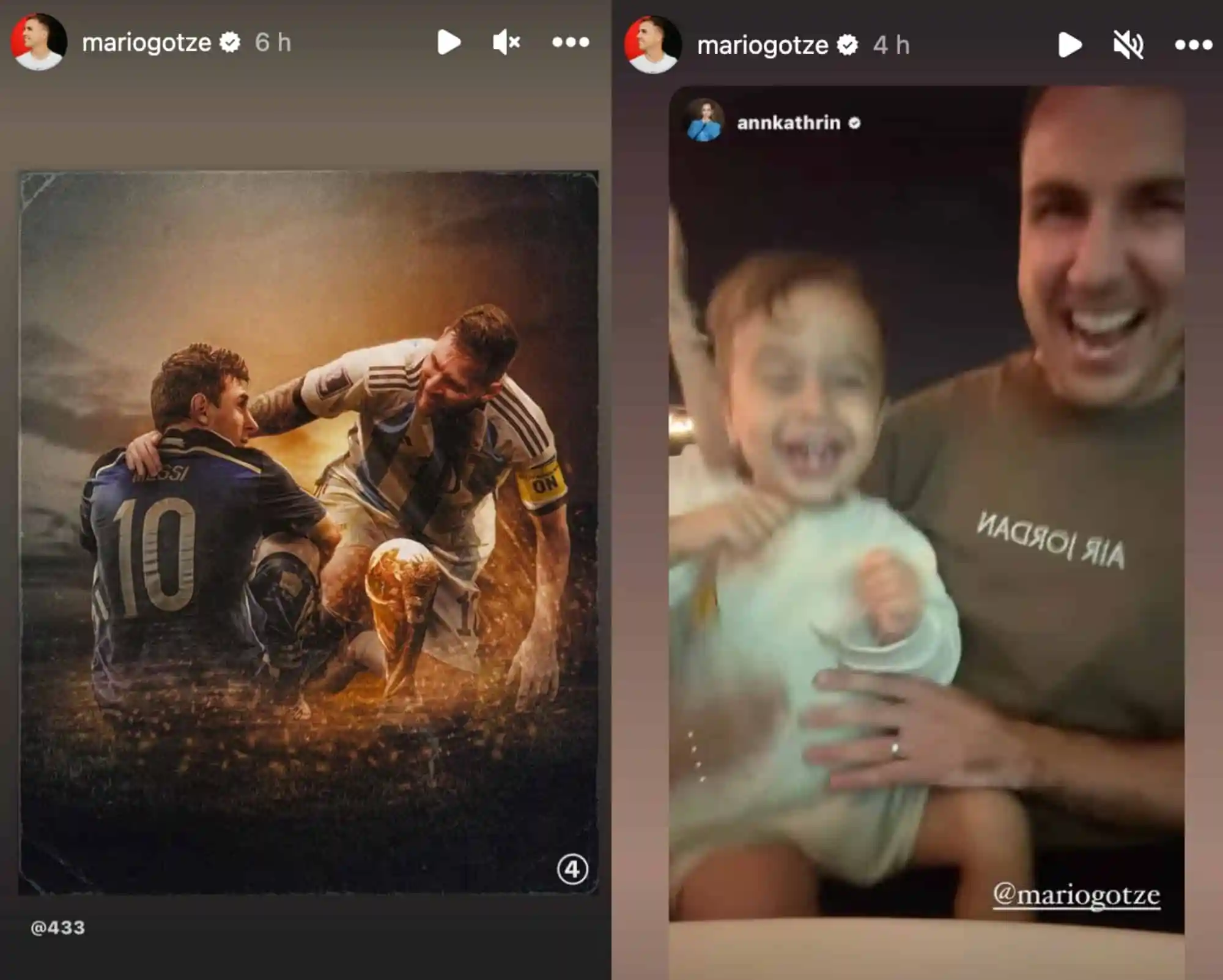 Primero, compartió el post de 433 donde se aprecia que al crack rosarino le llegó su revancha. Y luego, difundió un video (subido por su esposa) en el que aparece festejando junto a su bebé.