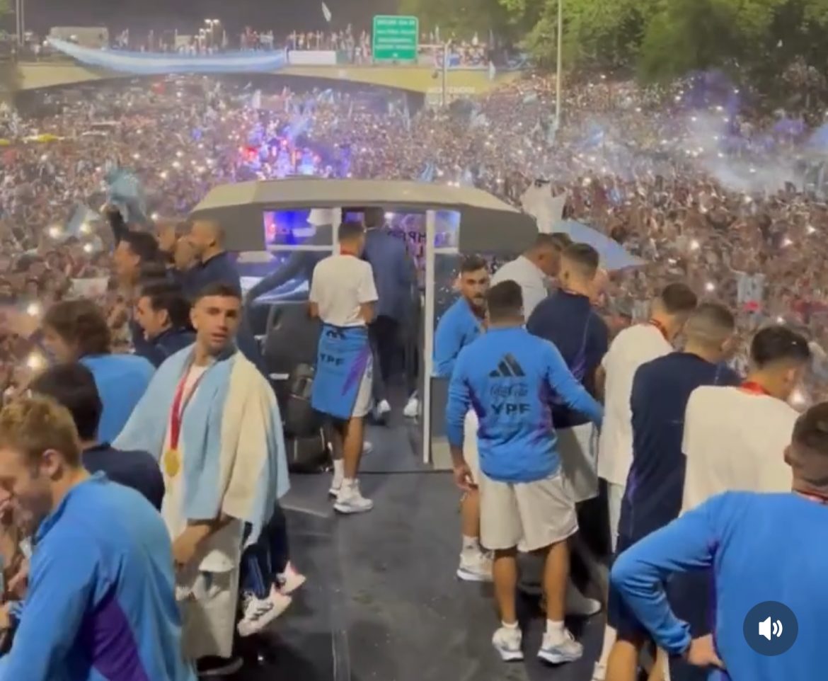 🚐 Y allí va la Scaloneta, junto al calor del pueblo que lo celebra, a festejar la gloria eterna…