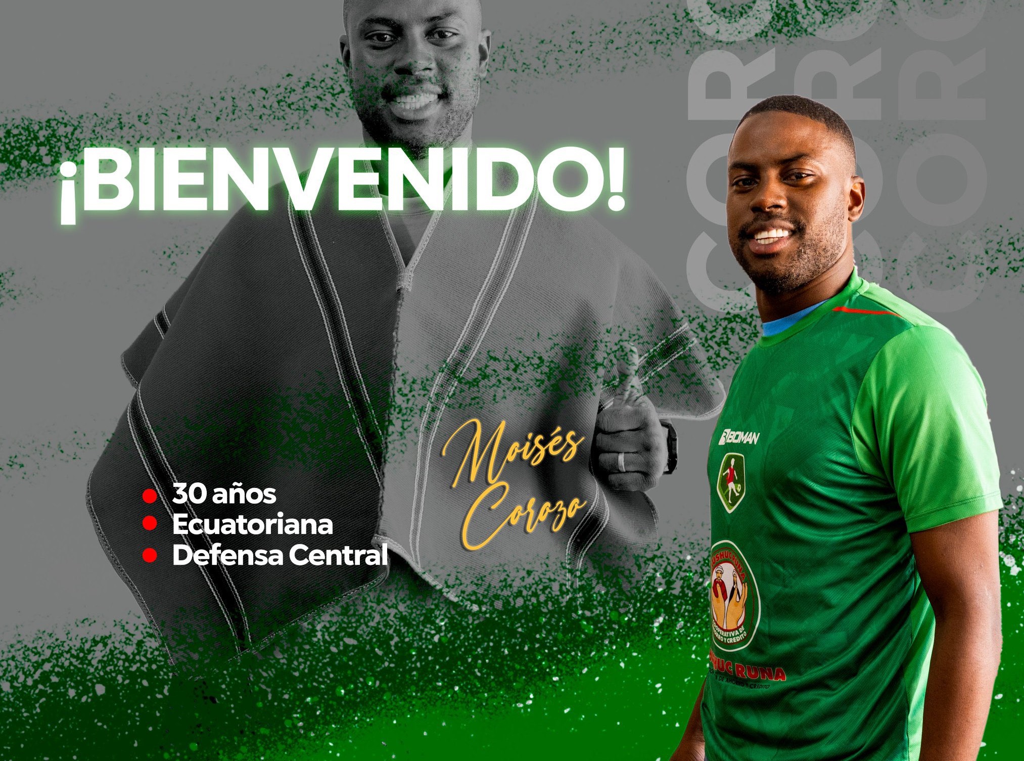 A través de las cuentas oficiales del club Mushuc Runa, el equipo ambateño ha hecho oficial la contratación del jugador Moisés Corozo por una temporada.
