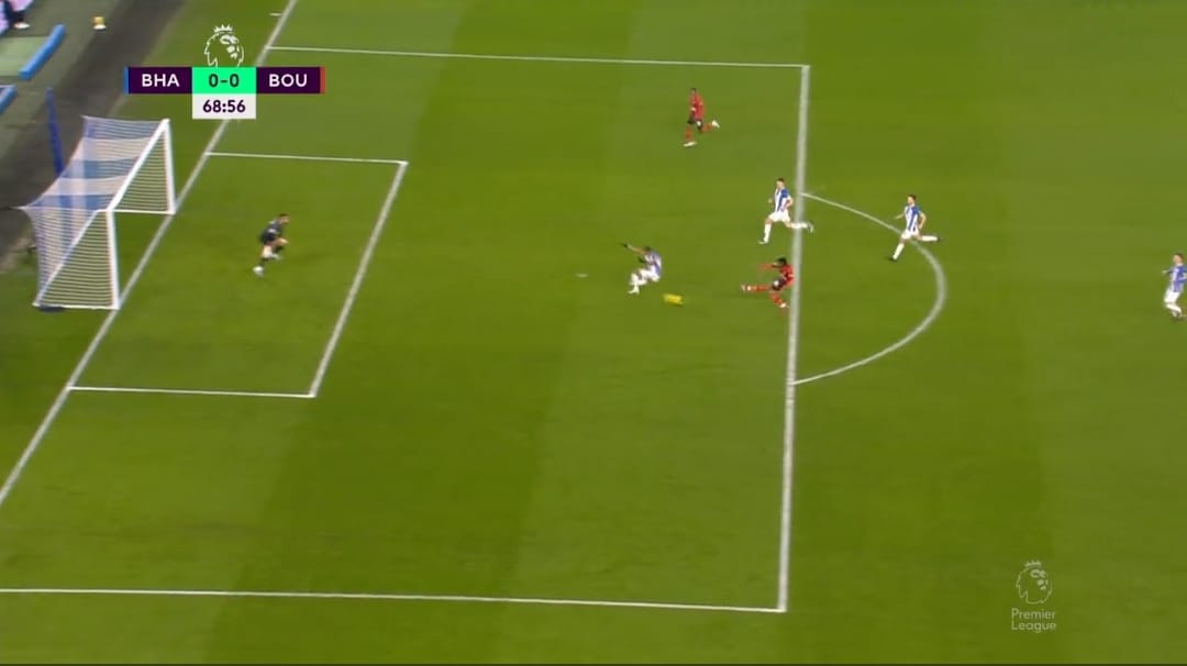Pervis Estupiñán fue una de las figuras del duelo de hoy entre Brighton y Bournemout por la Premier League.