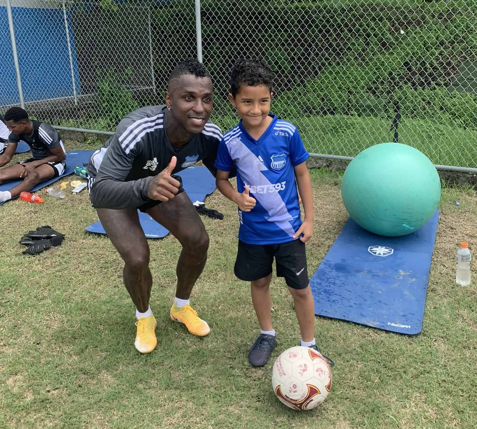 Este jueves la práctica de Emelec tuvo la visita de varios infantes y entre ellos estuvo el niño de la polémica con Miller.