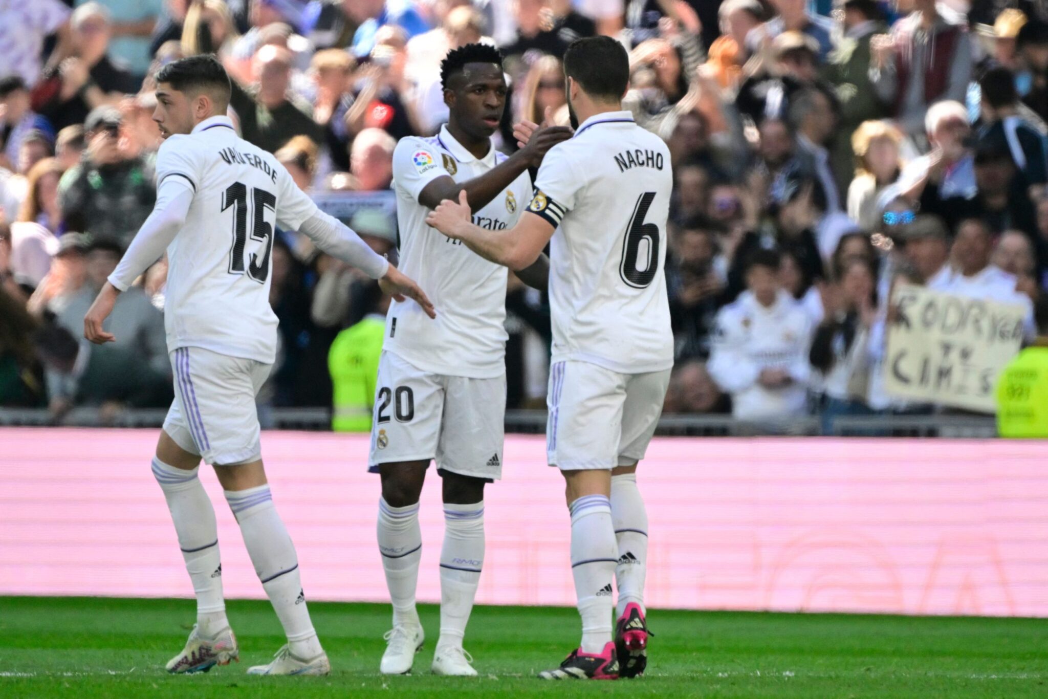 Con los goles Vinicius, Militao y Asensio el cuadro merengue consigue 3 puntos valiosos para serguir cerca del FC Barcelona por la pelea del títuo, el tanto del descuento lo hizo Joselu.