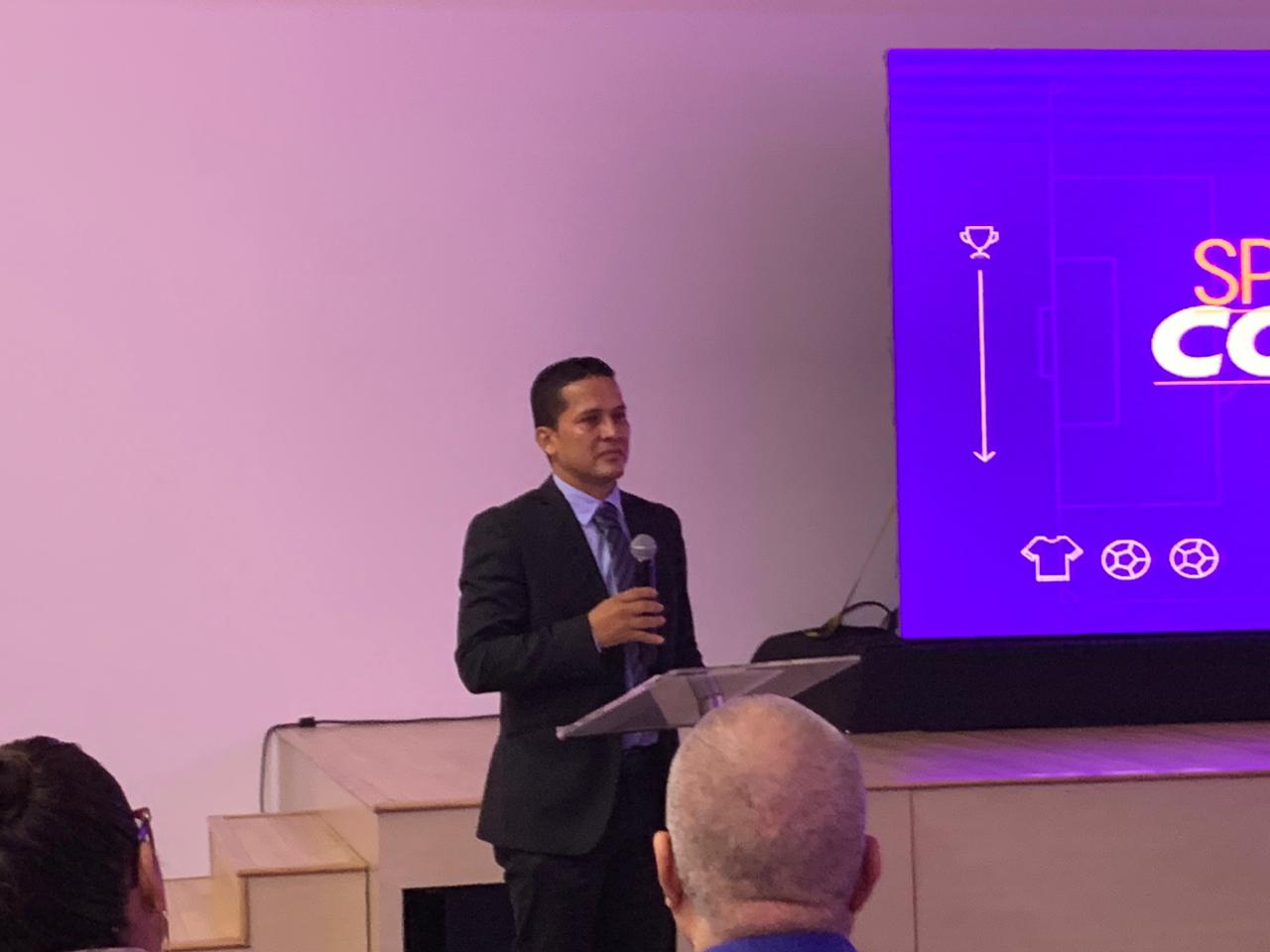 Luis Muentes, presidente de la Agremiación de Árbitros del Ecuador, durante el anuncio de la alianza entre su gremio y XTRIMECUADOR, dedicó palabras al fallecido Juan Carlos Macías.