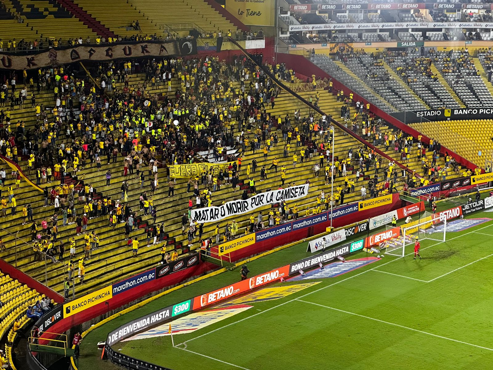 Y es que La “Sur Oscura” hizo silencio 15 minutos luego del arranque del partido en señal de protesta, debido al bajo nivel que ha mostrado el equipo amarillo en sus últimas presentaciones.