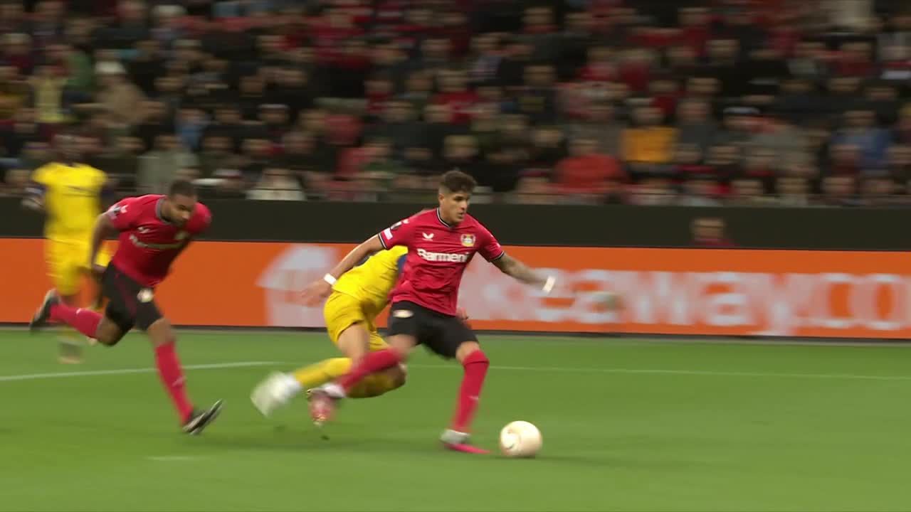 Piero #Hincapié 🇪🇨 inició la jugada del gol para el empate del Bayer Leverkusen 🇩🇪 en la Europa League.