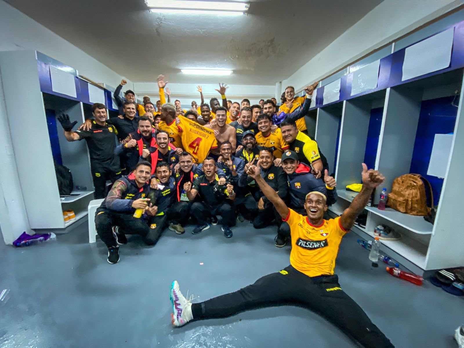 En el vestuario amarillo, la fiesta se prendió con los jugadores cantando y saltando junto al cuerpo técnico y personal del club en una noche histórica.