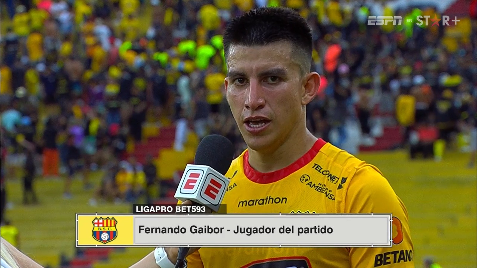 Fernando Gaibor, mediocampista de Barcelona Sporting Club, dialogó con los colegas de ESPN Ecuador, luego de la victoria ante Deportivo Cuenca.