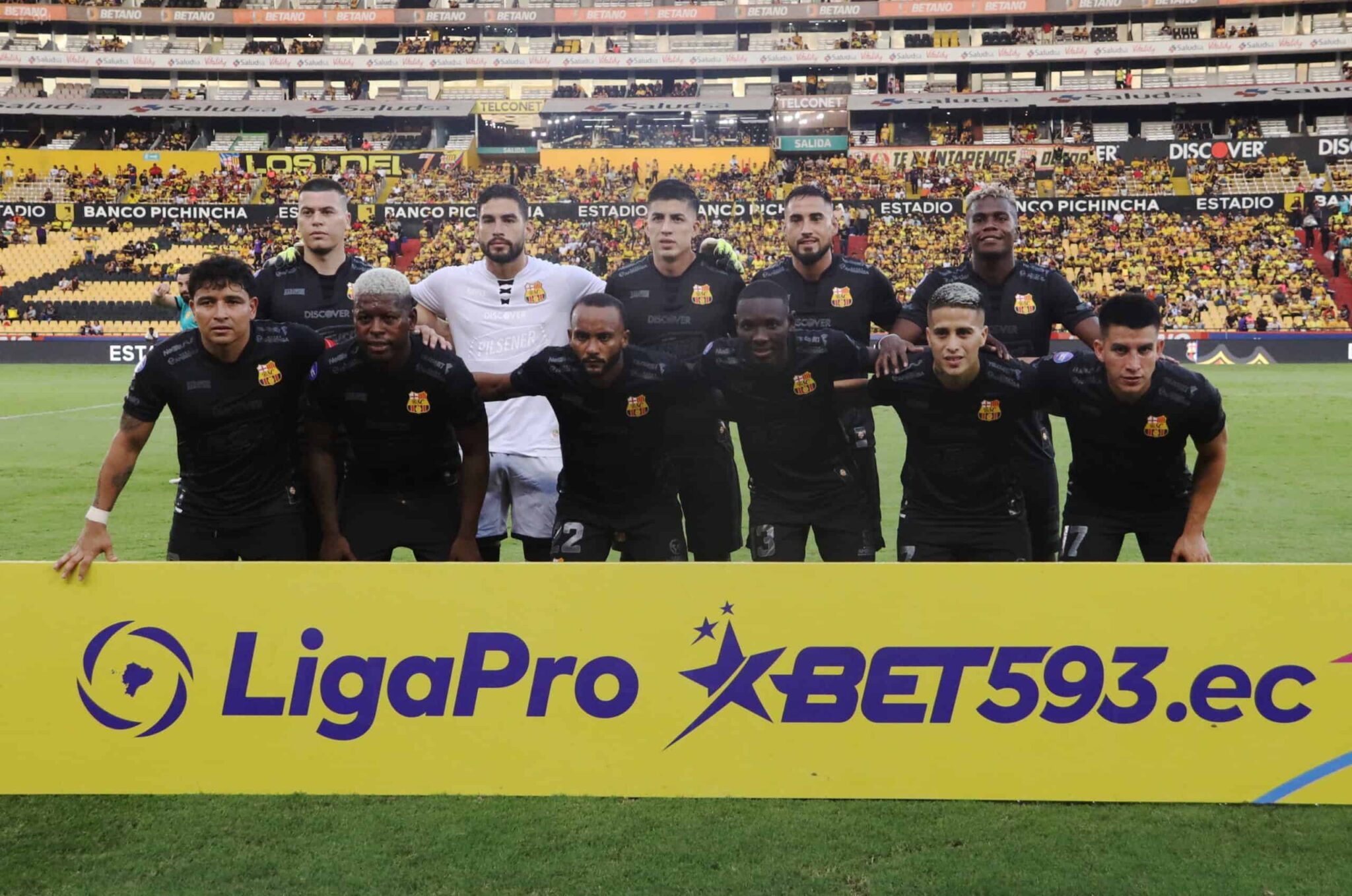 Este es el 11 titular dirigido por el DT César Farías que enfrentará a #BarcelonaSC en la 9na. fecha de la #LigaProBet593.🏟️ Estadio Monumental Banco Pichincha