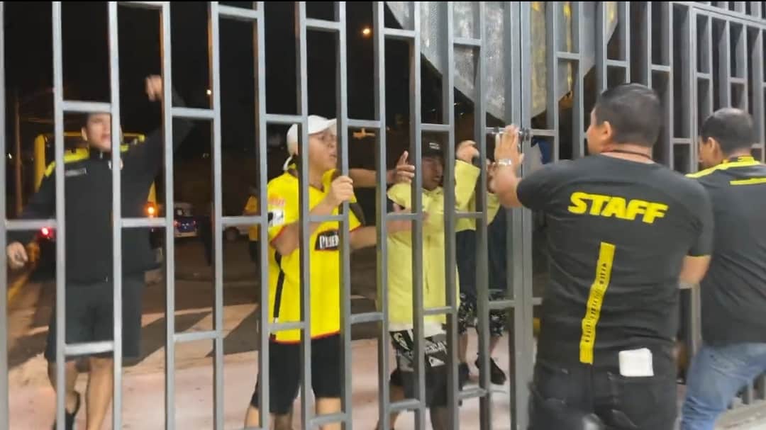 Un grupo de hinchas intento ingresar a la fuerza por el lado del túnel. Comenzaron a tirar piedras y palos. @DNewsSportsEc pic.twitter.com/0j38dnx1Rv