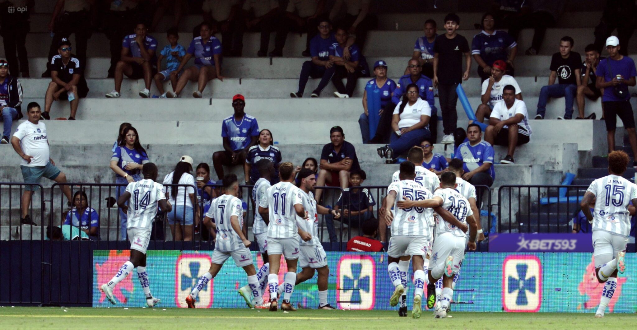 Facundo Castelli, delantero de 28 años de edad, elemento de Delfín SC, atendió a STAR PLUS después de la victoria de su equipo contra Emelec en el Capwell, por la Fecha 4 de la Fase 2 de la LigaPro BET593.