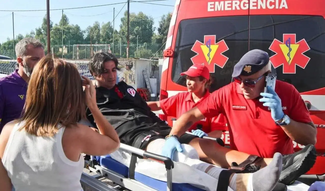 Un hecho insólito se produjo este domingo en la cuarta categoría del fútbol portugués durante el encuentro entre el Valadares Gaia y el Marco 09. En pleno encuentro, el director técnico del conjunto visitante, ¡sufrió una fractura en su pierna y debió ser llevado al hospital!