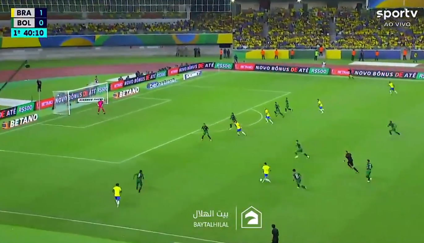 Brasil se repuso rápidamente a las acciones desperdiciada y consiguió el 1-0 de la mano de Rodrygo, quien aprovechó un rebote fortuito en la defensa boliviana.