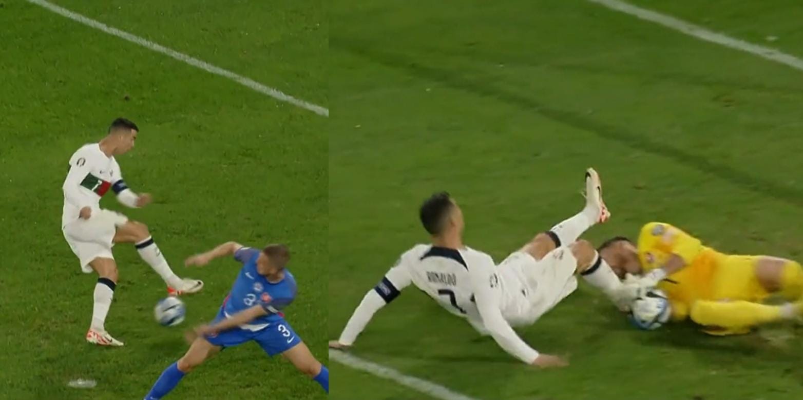 ¿QUÉ LE PASÓ A CR7? Blooper del portugués y durísima jugada peligrosa contra el arquero Martin Dubravka.