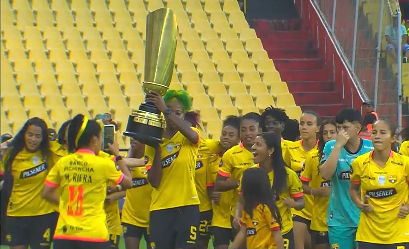 Previo al duelo por la LigaPro BET593 entre BSC y LDU, el plantel femenino dio la vuelta olímpica, entre aplausos de toda la afición presente en el Estadio Monumental.