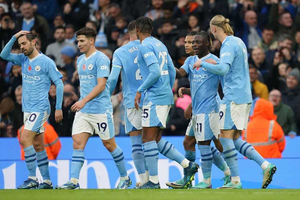Los goles del partido fueron anotados por Jeremy Doku a los 30 minutos, Bernardo Silva a los 33 y 83 minutos, Manuel Akanji a los 37 minutos, Phill Foden a los 64 minutos y Nathan Aké a los 88 minutos.