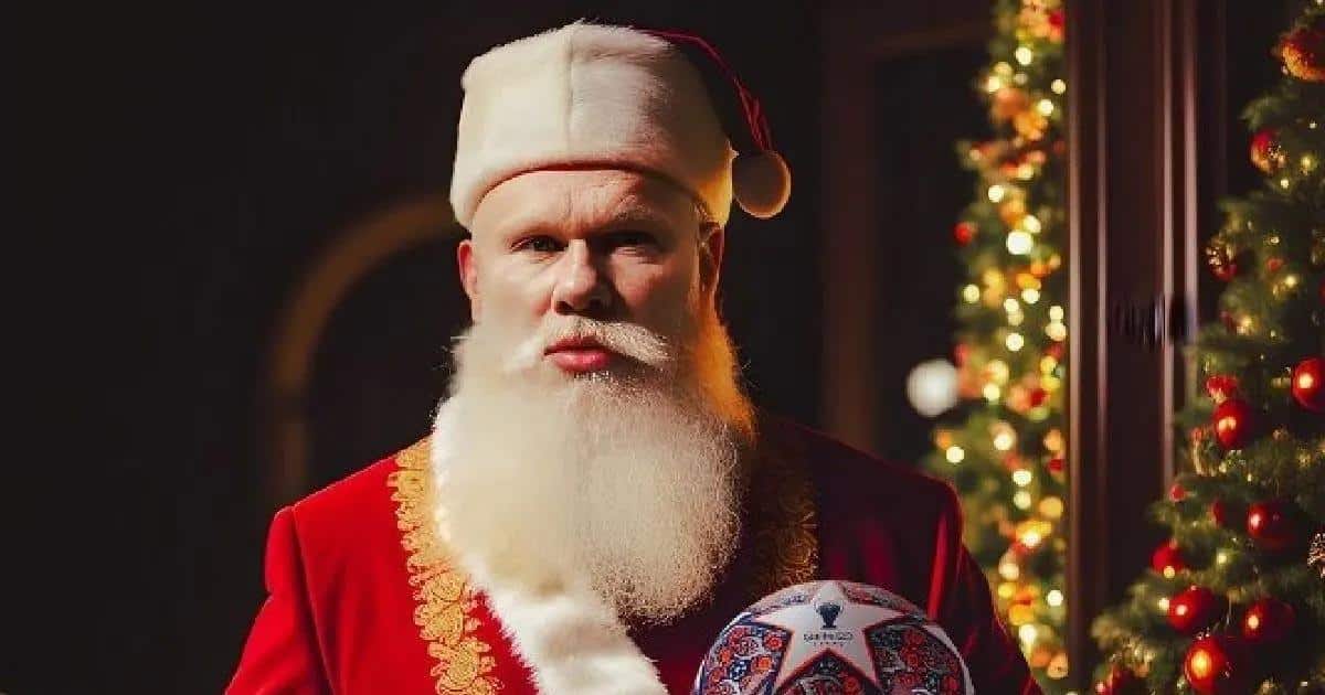 El delantero noruego, del Manchester City, Erling Haaland no tuvo mejor idea que disfrazarse de ‘Papá Noel’ en plena Navidad.