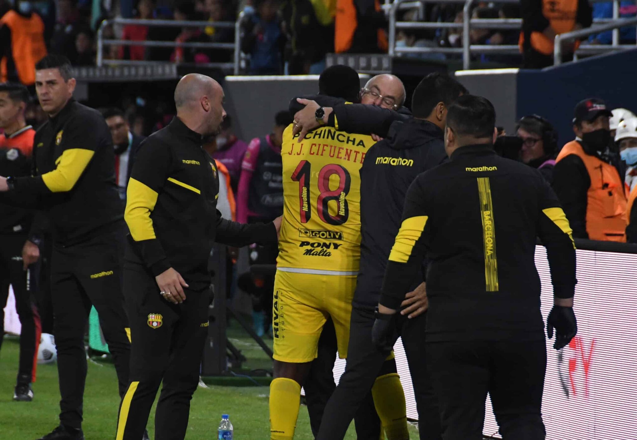 Luego agregó: “…Pero lo que te puedo asegurar es que Jhon Jairo (Cifuente), para mí, es el mejor centro delantero que tiene el fútbol ecuatoriano, por lejos al resto. El desafío nuestro es ponerlo bien”.