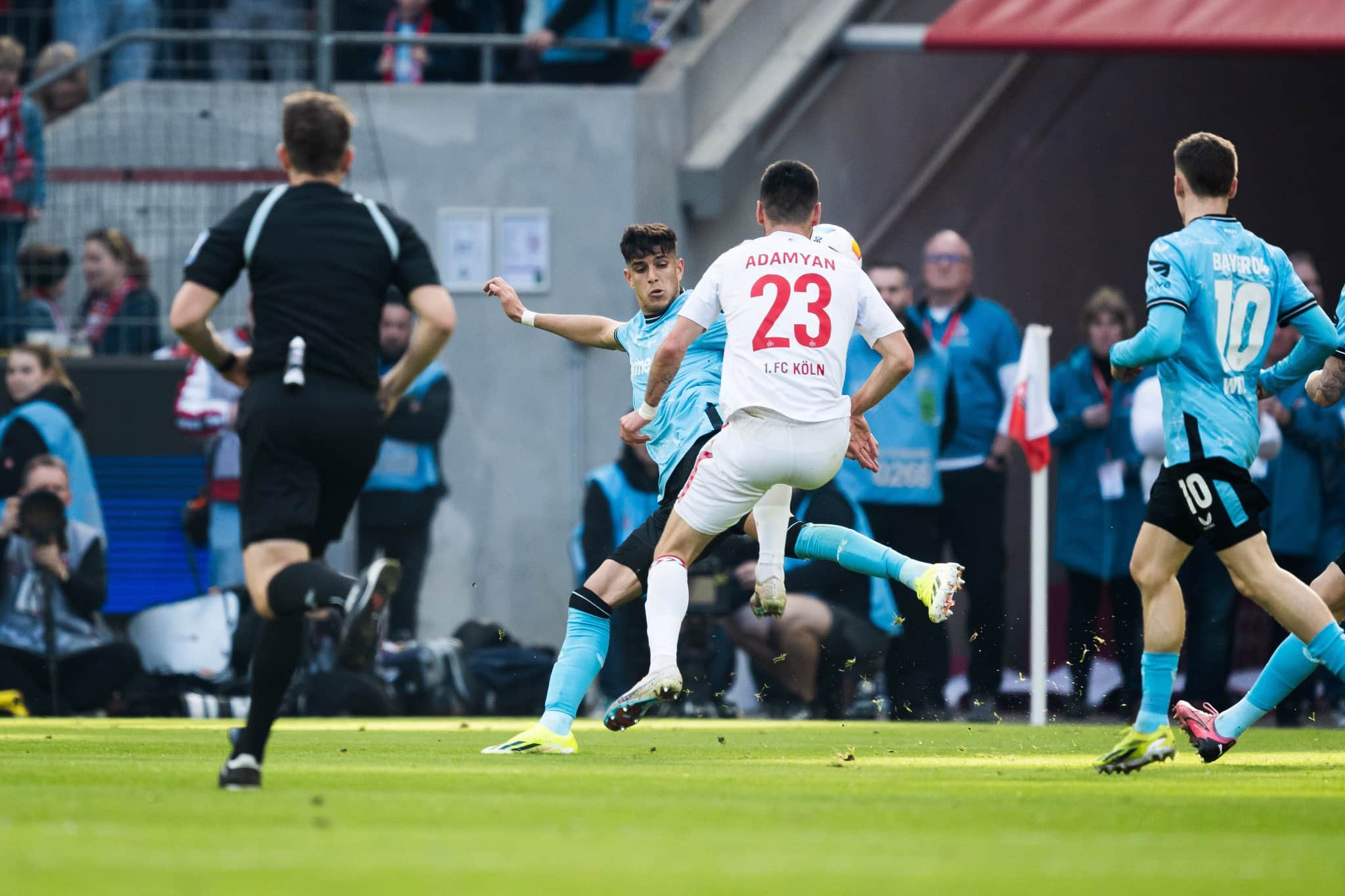 Se le había puesto el partido muy complicado al Colonia. Estaba con uno menos y el Leverkusen había conseguido destrozar su resistencia. Sin embargo, no le perdió la cara al partido y su actitud a la vuelta de vestuarios fue fantástica. De hecho, pudo empatar el partido con un remate al poste de Sargis Adamyan. Necesitaba ajustar alguna cosa Xabi Alonso si no quería que se le complicase el partido y tenía dinamita en el banquillo.